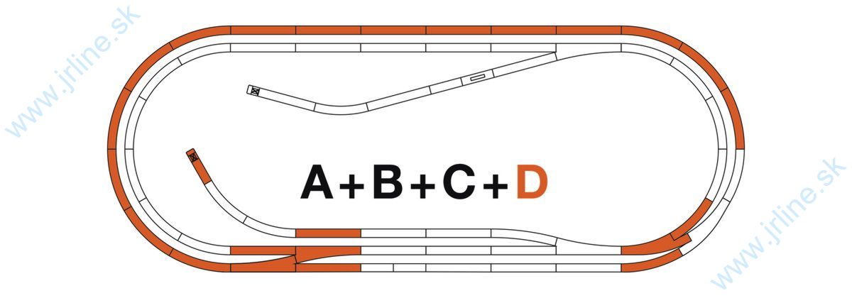Sada koľají ROCO LINE D (Koľaj s násypom).Obsah:9 rovných koľají G1 (42510)1 rovná koľaj G1/2 (42512)1 oblúková koľaj R2 (42522)10 oblúkových koľají R3 (42523)2 Ľavé manuálne výhybky Wl15 (42534)1 Ľavá manuálna oblúková výhybka BWl2/3 (42560)1 nárazníková zarážka (42608)1 koncový kus násypu (42651)1 náhradný násyp (42650)Potrebný priestor: cca 250 x 105 cmMinimálna konfigurácia sady koľají A je súčasťou všetkých štartovacích sád s koľajnicou ROCO LINE a nie je dostupná ako samostatná sada. Všetky ostatné sady koľají sú založené na tejto konfigurácii. (A+B+C+D)Pôvodné číslo položky: 42012