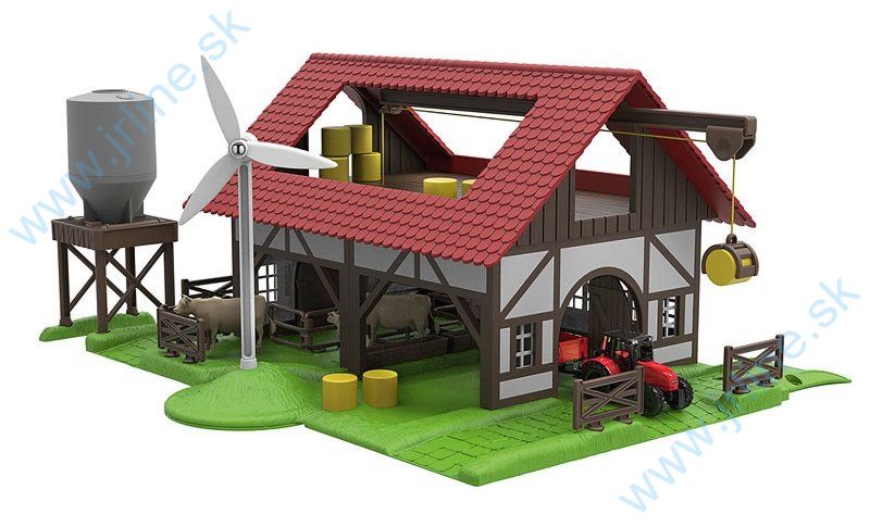 Farma s 4 rôznymi možnosťami zostavenia, ako stavebnicový model v detskom prevedení.Stabilná stavebnicová súprava z niekoľkých dielov, ktoré sa dajú poskladať. Farma s figúrkami zvierat, stajňami, balíkmi slamy a silom na krmivo. Balíky slamy sa dajú navyše nakladať pomocou kladkostroja. Dodávka sa uskutočňuje v jednotlivých častiach. Rozmery: 45 cm dlhá x 38 cm široká x 22 cm vysoká.Hlavné výhodyMaximálna zábava vďaka 4 rôznym možnostiam zostaveniaHra plná fantázieFarma s figúrkami zvierat, stajňami, balíkmi slamy a silom na krmivo na nakladanie nákladných vagónov