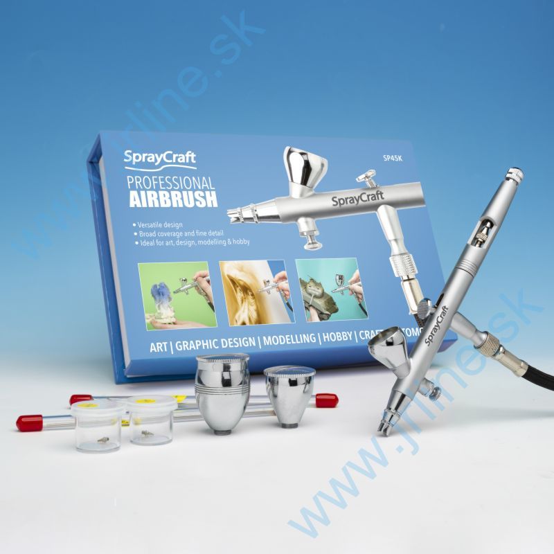 Táto profesionálna súprava airbrush je navrhnutá tak, aby zvládla akúkoľvek úlohu, s tromi súpravami trysiek a vymeniteľnými nádobkami si ľahko poradí so širokým pokrytím a jemnými detailmi.Atramenty v spreji, vodové farby, farbivá, akrylové farby, laky na vodnej báze a emaily.Obsahuje 3 šálky (2 cm3, 7 cm3 a 12 cm3) 3 súpravy ihiel / dýz (0,2, 0,3 a 0,5 mm) a mikro-nastavovač pre maximálnu všestrannosť .